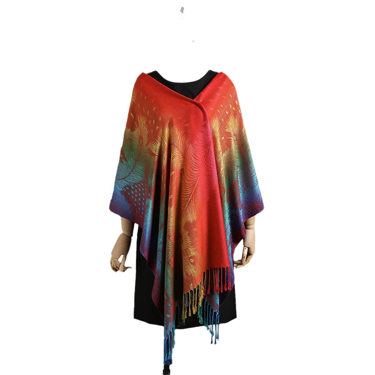 Cette écharpe combine confort et style, avec ses teintes inspirées du coucher de soleil et ses franges délicates. Elle rehausse n'importe quelle tenue, vous offrant un look chic et raffiné.